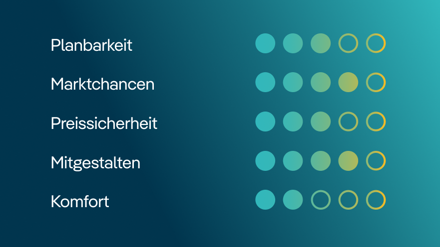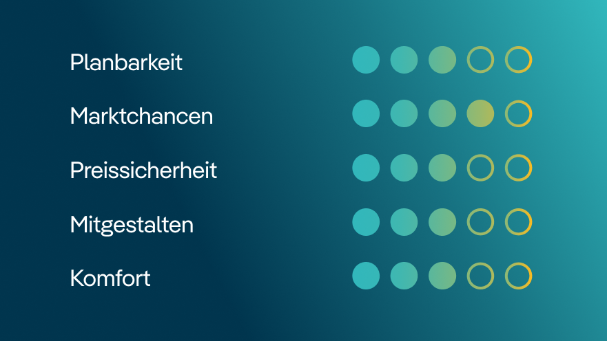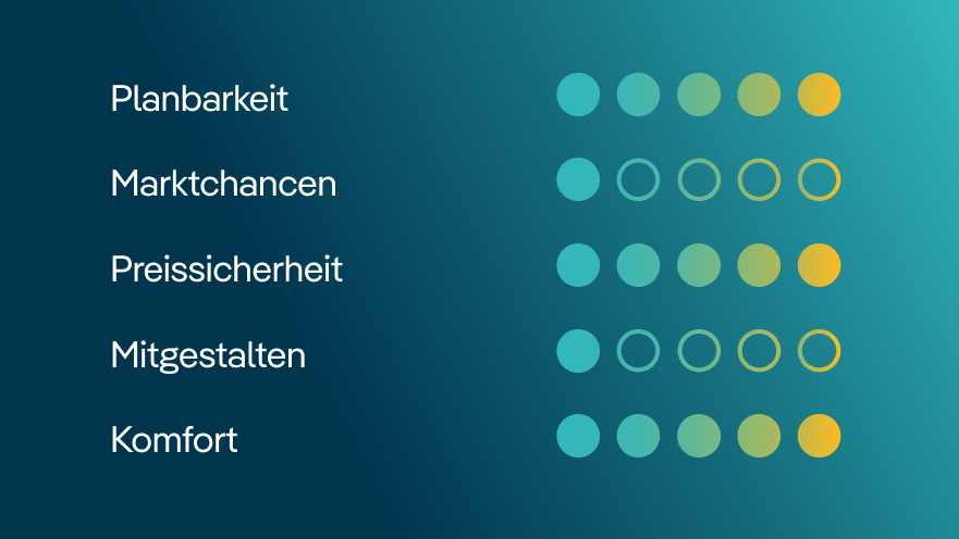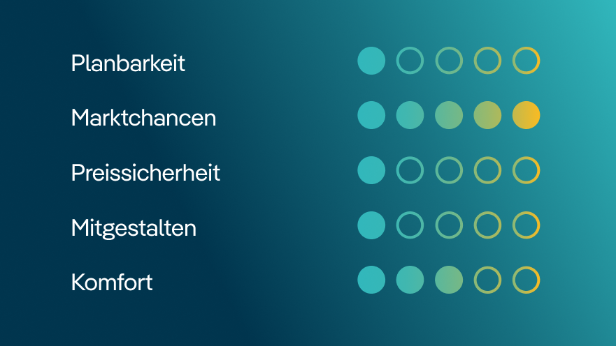 Gerne beraten wir Sie zur Direktvermarktung Ihres Grünstroms und begleiten Sie zuverlässig von der Planung bis zur Umsetzung.